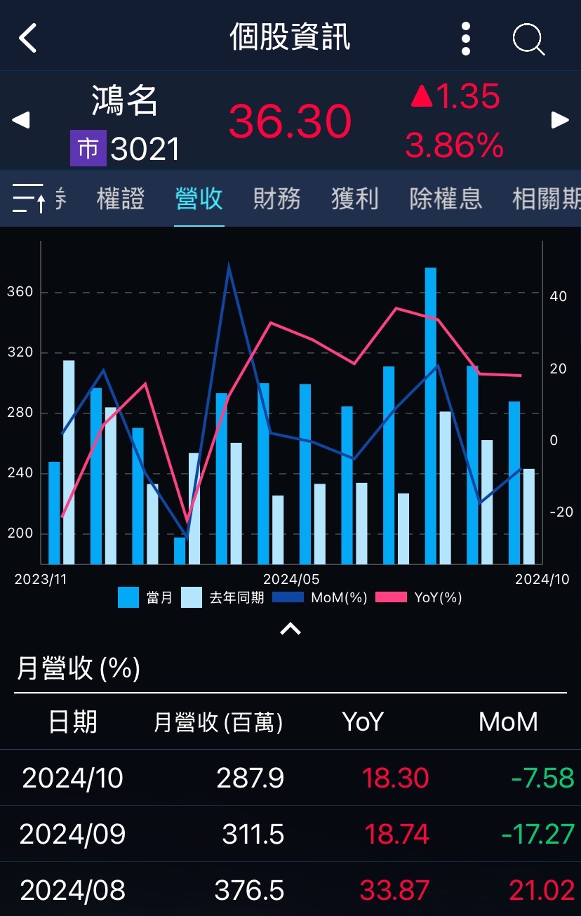 鴻名 (3021) - 月營收