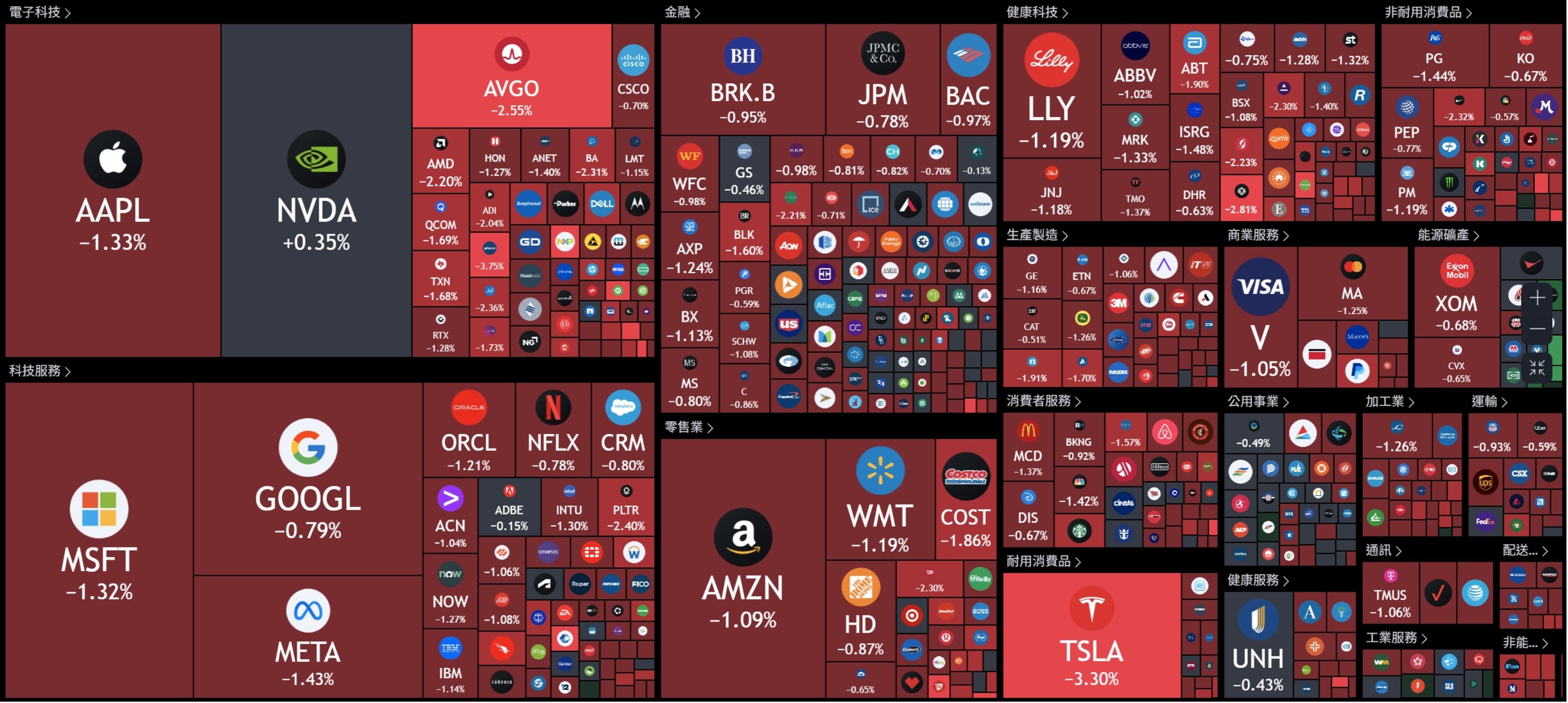 ▼ 下跌:汽車及零部件、金融科技、百貨零售