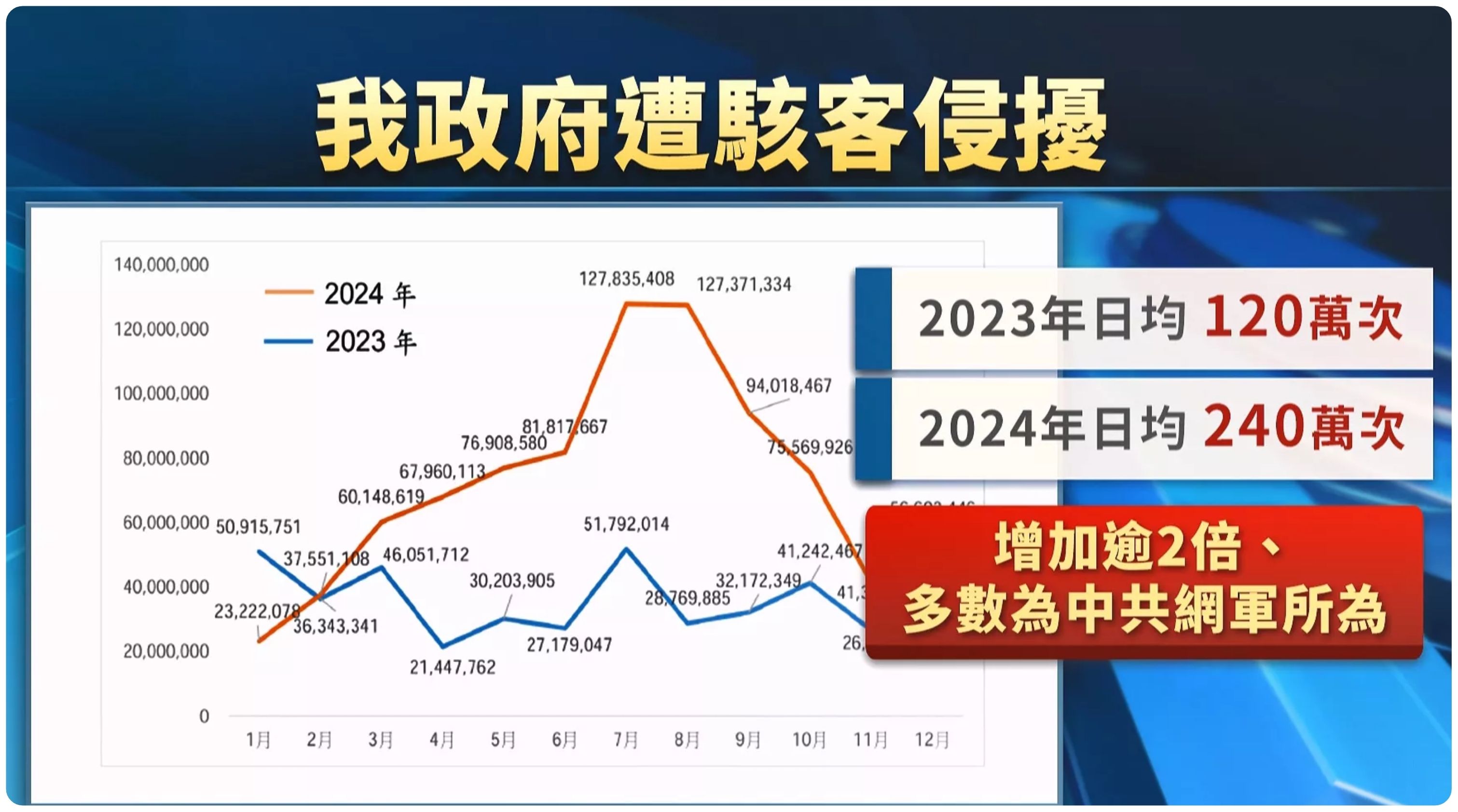 🔸️根據台灣國家安全局(NSB)報告,2024 年政府網路每日平均遭受 240 萬次攻擊,較 2023 年的 120 萬次相比翻了1倍,凸顯資安防護的迫切性。